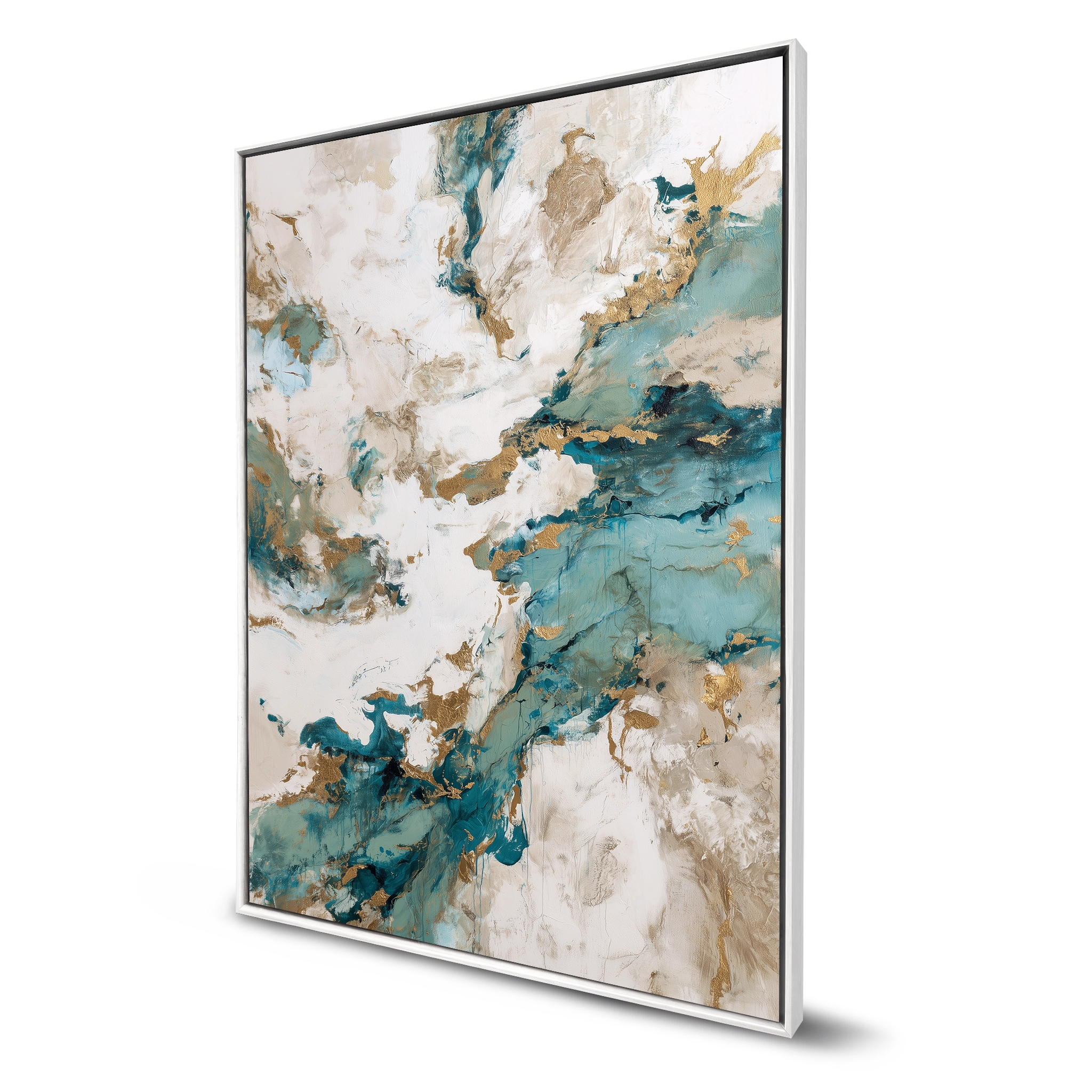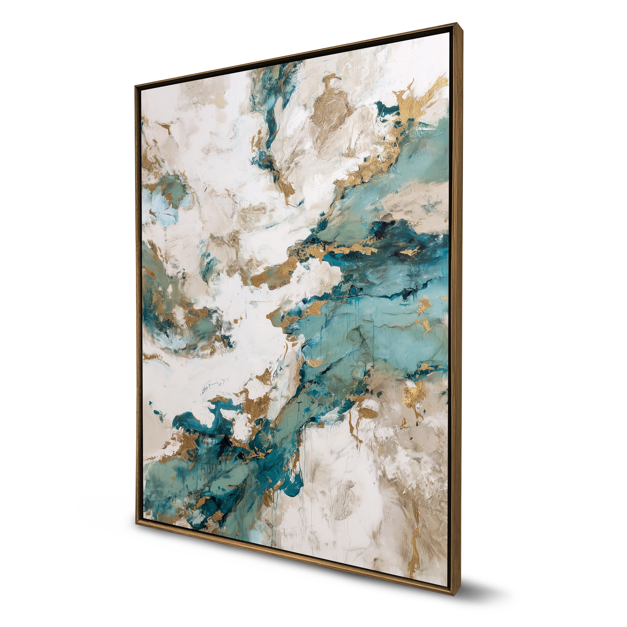 Cria um efeito de profundidade e leveza visual e a moldura não cobre nenhuma parte da frente da obra, valorizando 100% da imagem.