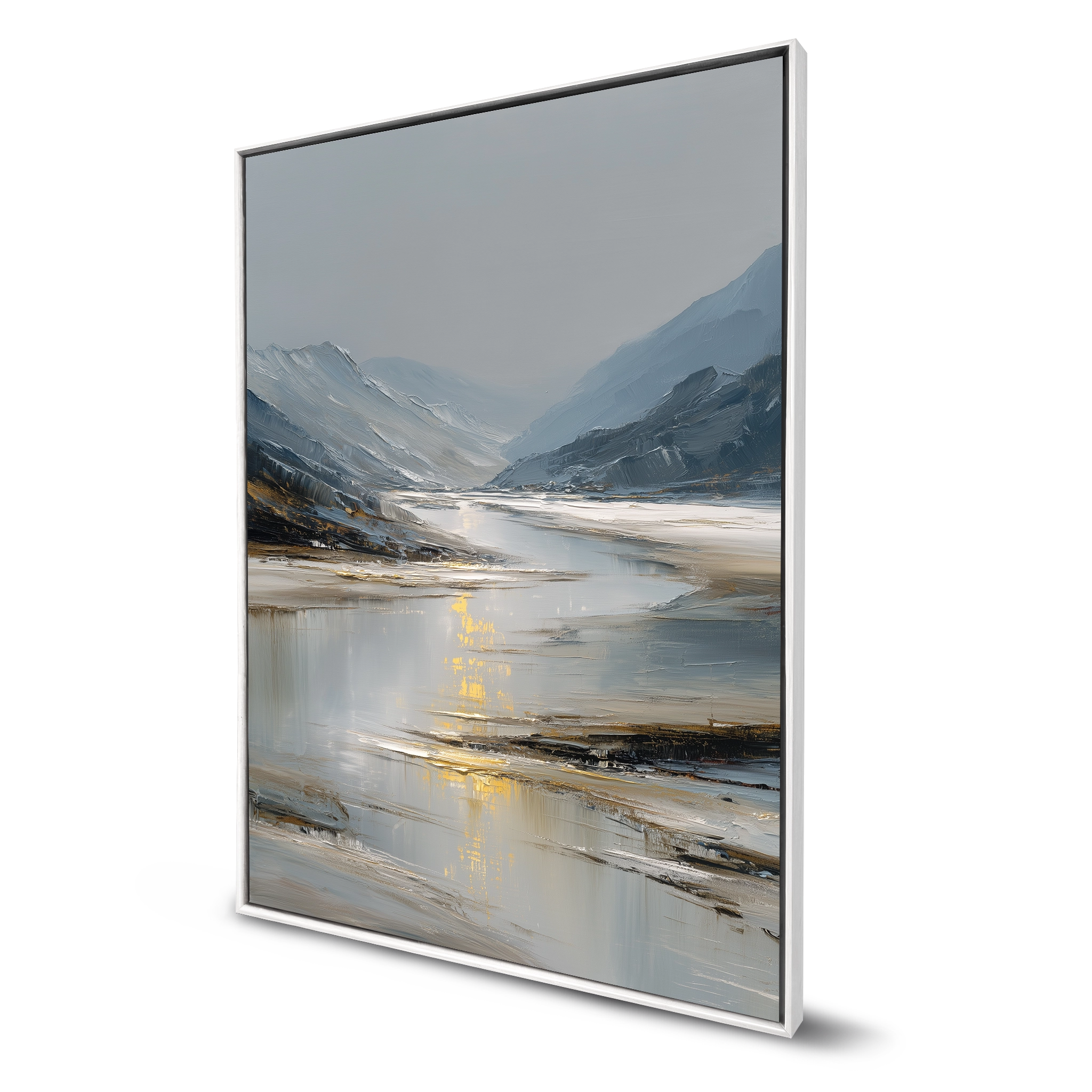 Cria um efeito de profundidade e leveza visual e a moldura não cobre nenhuma parte da frente da obra, valorizando 100% da imagem.